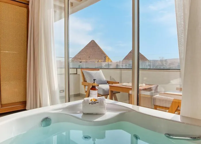 Offering bicycles for rent, One Gate Pyramids View Inn Cairo lies merely 250 metres from Le Meridien Pyramids Spa. Located about a 10-minute drive from Great Pyramid of Giza, this Cairo hotel features views of Grand Egyptian Museum.